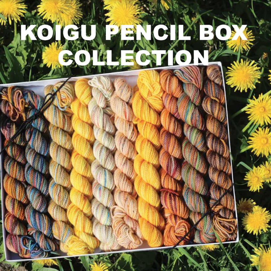 Each Pencil Box features 10 different colours in 25g skeins, specially curated by the women at Koigu. Check out the Pencil Box fingering to see what colours are available now (sold separately)