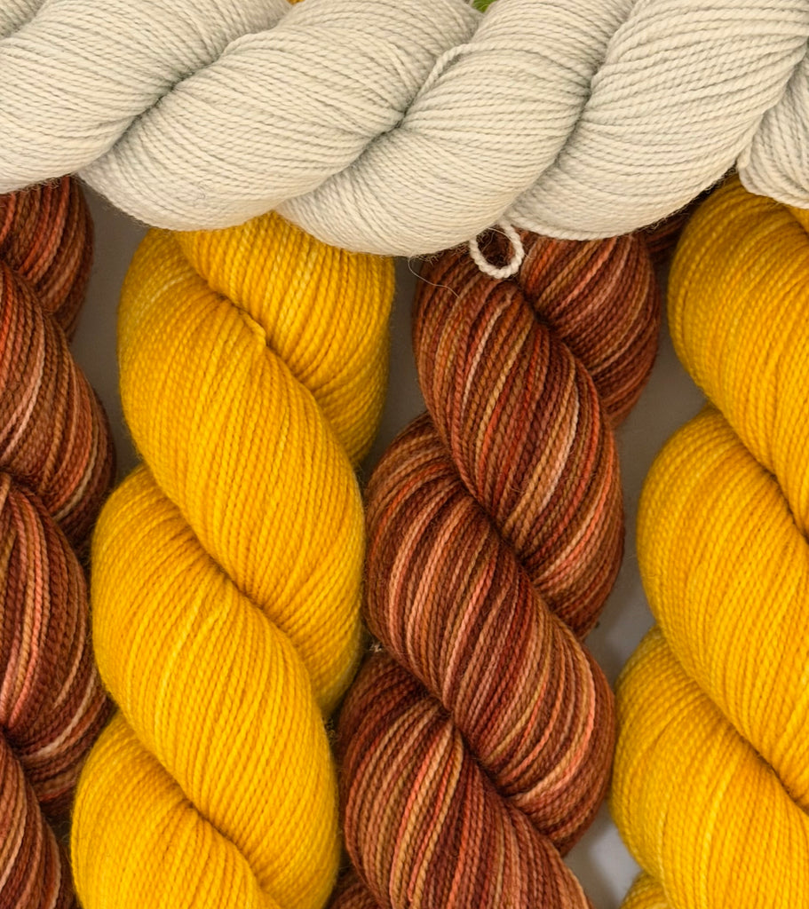 Our kits includes 2 skeins each of 2 colours as well as a third colour just for the little stripe. Pattern included in kit